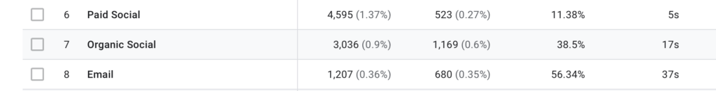 This tells me that the marketing team at NWTC should spend more time and energy on their email campaigns than on their paid social. Paid social may have more sessions than emails, but people stay on emails longer and interact with them more.